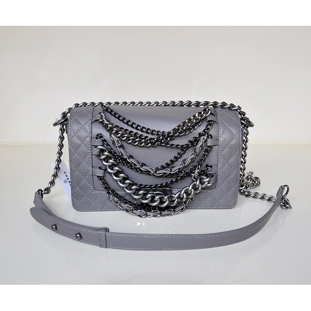 2014 Le Boy Chanel Flap Shoulder Bag in Calfskin Leather A67919 Gray