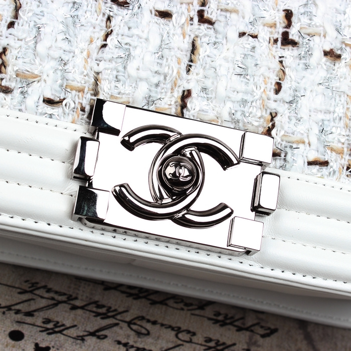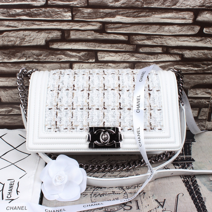 2015 Boy Chanel Fabric Flap Shoulder Bag A67086 White