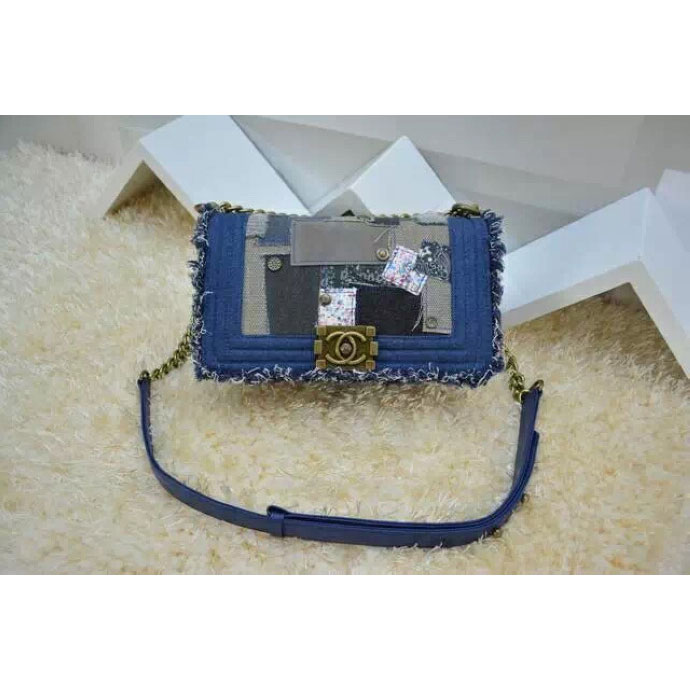 2015 Boy Chanel Flap Shoulder Bag Denim A67086 Blue