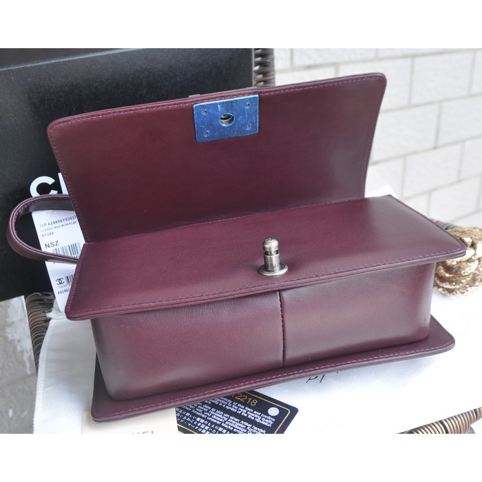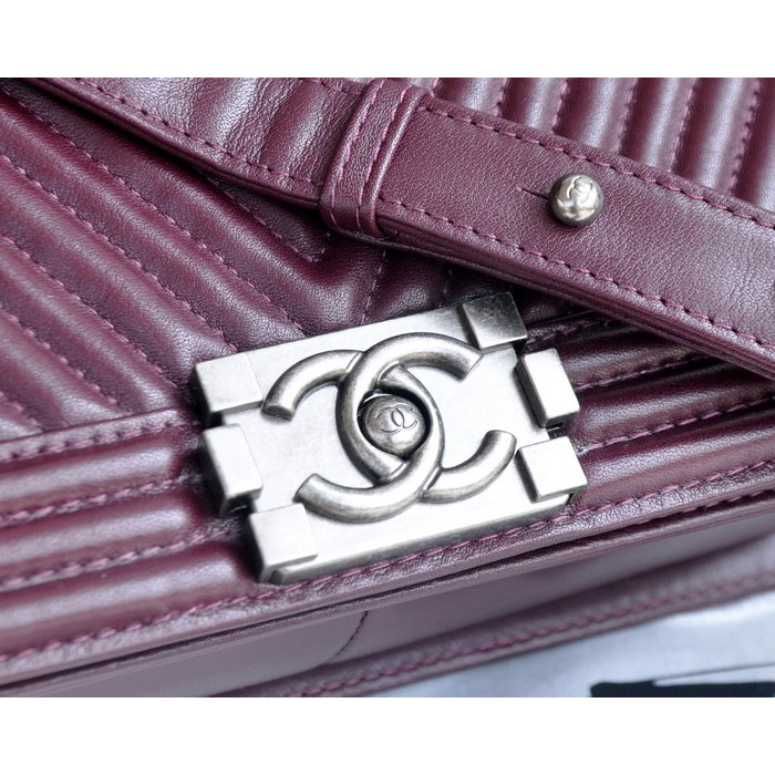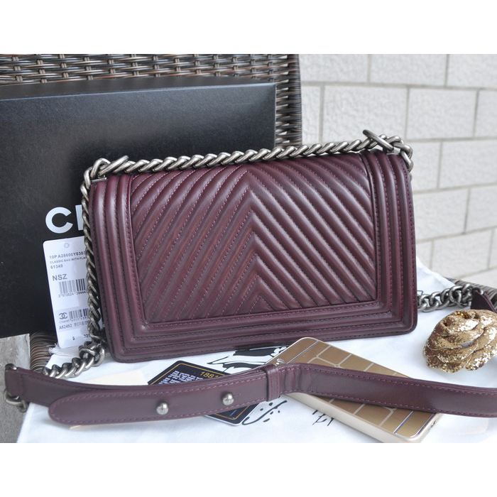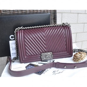 2015 Boy Chanel Flap Shoulder Bag Herringbone Stitching A92493 Burgundy
