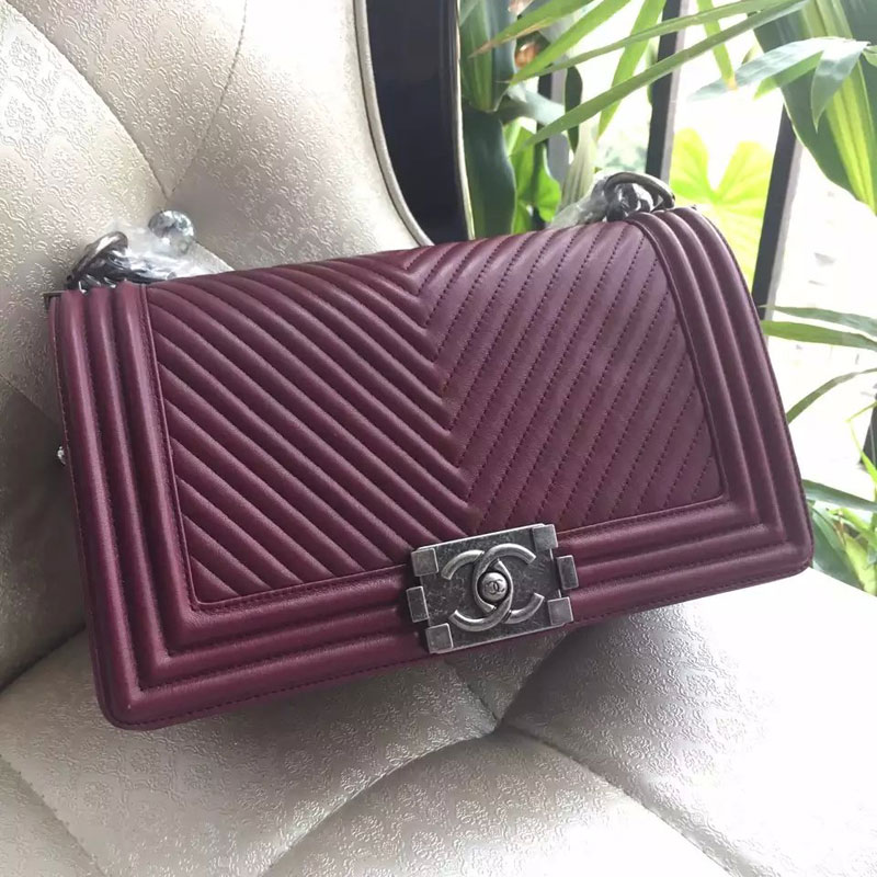 2015 Boy Chanel Flap Shoulder Bag Herringbone Stitching A92493 Claret