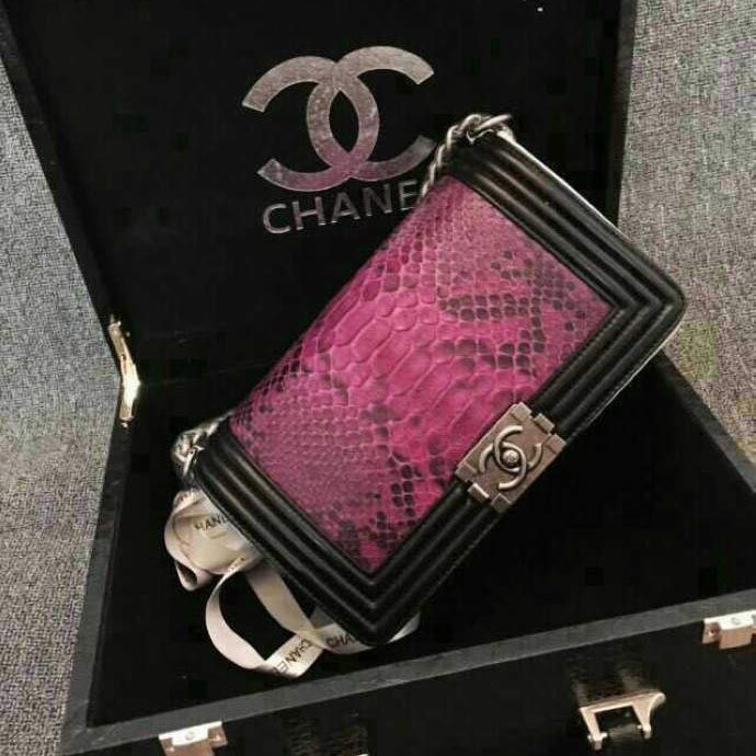 2015 Boy Chanel Flap Shoulder Bag Python Leather A66095 Black&Rose