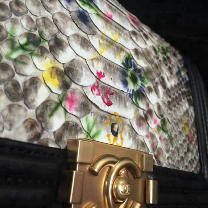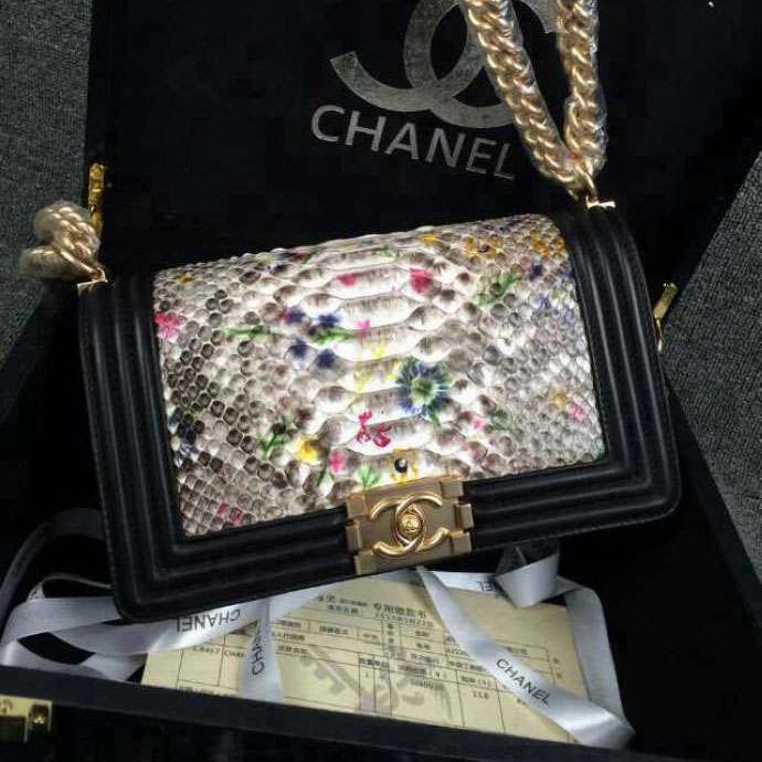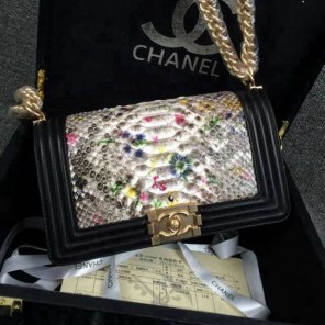 2015 Boy Chanel Flap Shoulder Bag Python Leather A66095 Black