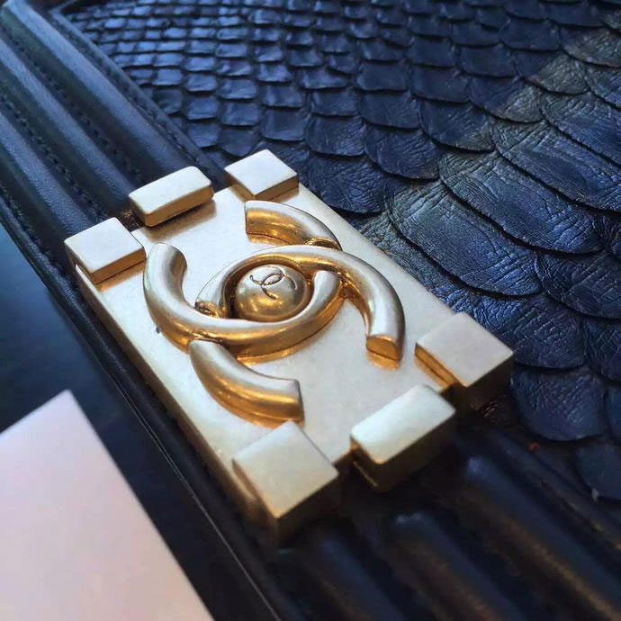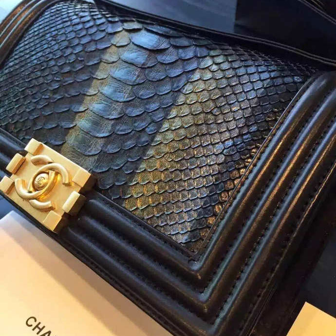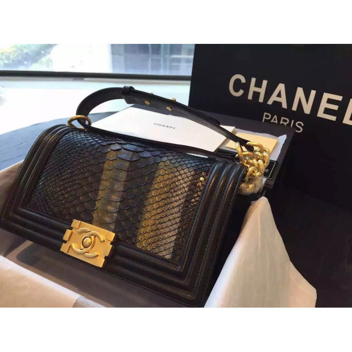 2015 Boy Chanel Flap Shoulder Bag Python Leather A66095 Black