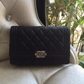 2015 Boy Chanel WOC mini Flap Bag Black Original Caviar leather A80287