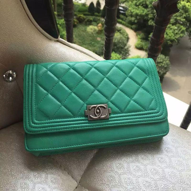 2015 Boy Chanel WOC mini Flap Bag Green Original Sheepskin leather A33808