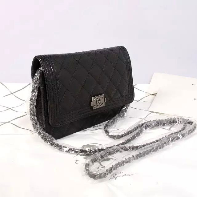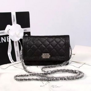 2015 Boy Chanel mini Flap Bag Black Original Caviar leather A33808 Silver