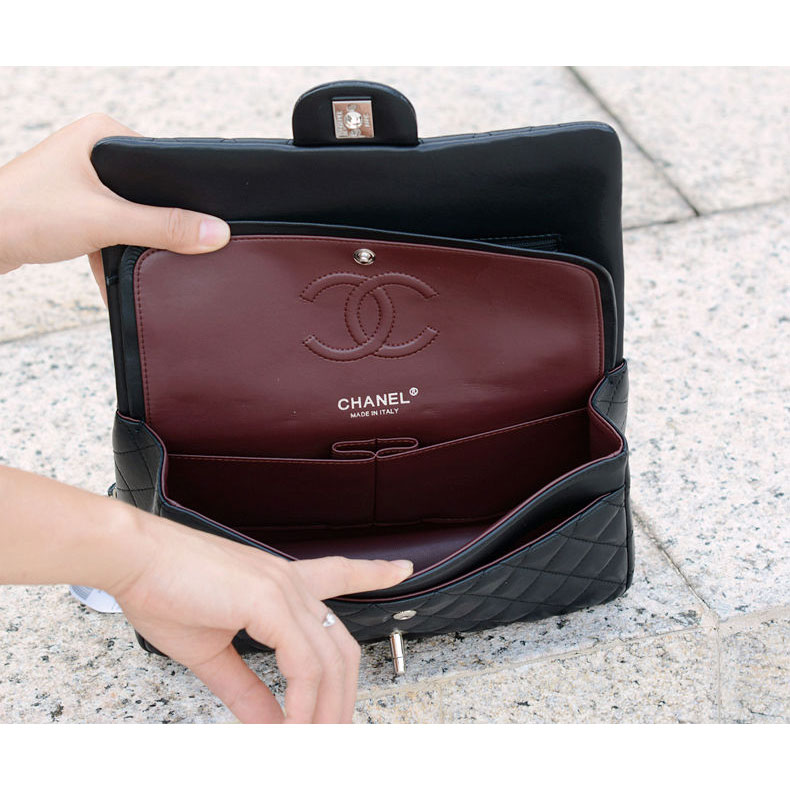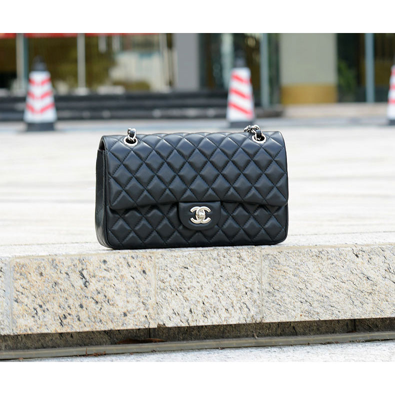 2015 Chanel 1112 Flap Bag Original Sheepskin Leather Black with Silver