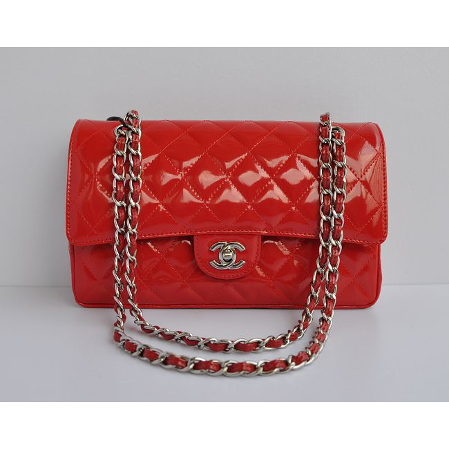 2015 Chanel 2.55 Series Bags Red Patent Leather 1112 Silver