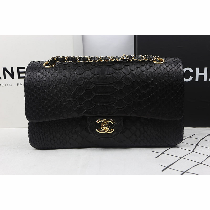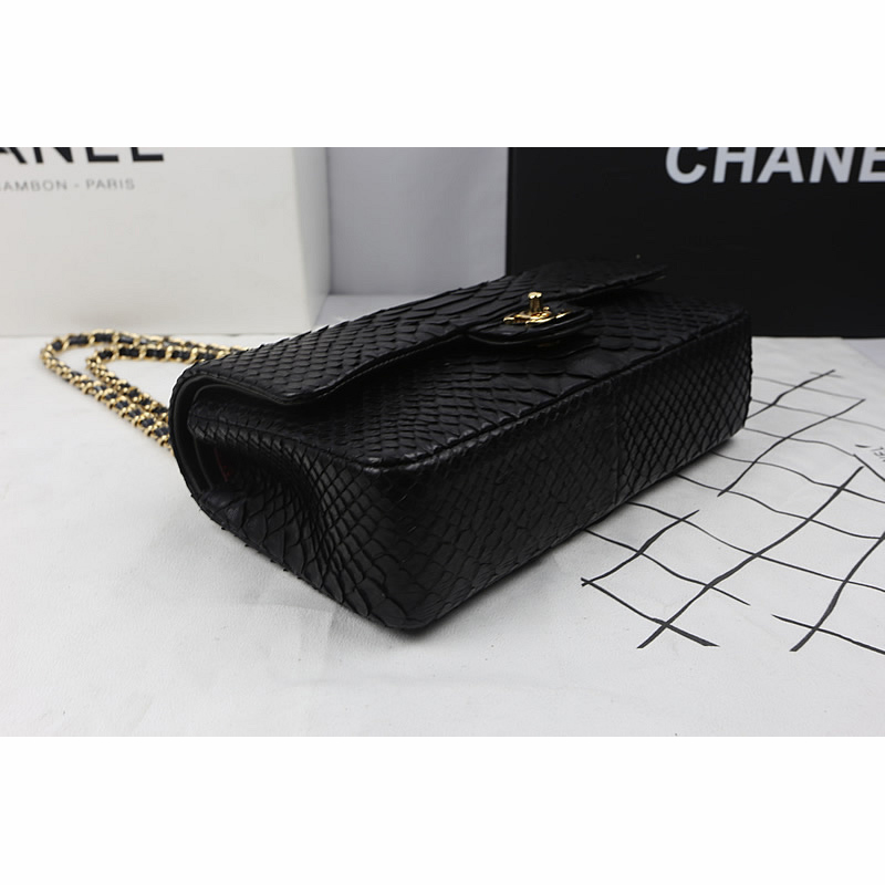 2015 Chanel 2.55 Series Flap Bag Original Snake Leather 1112 Black