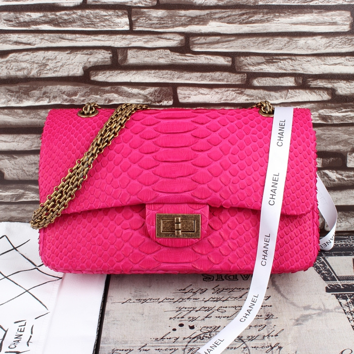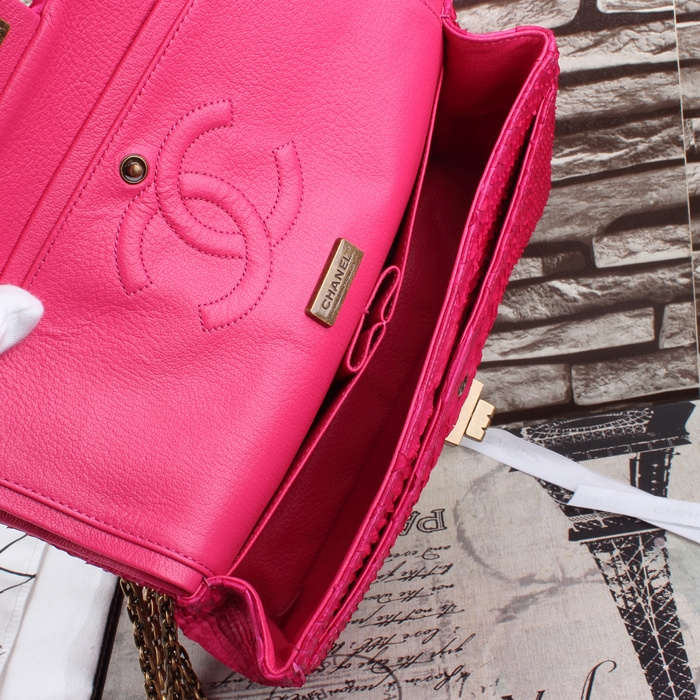 2015 Chanel 2.55 Series Flap Bag Original Snake Leather 1112 Rose