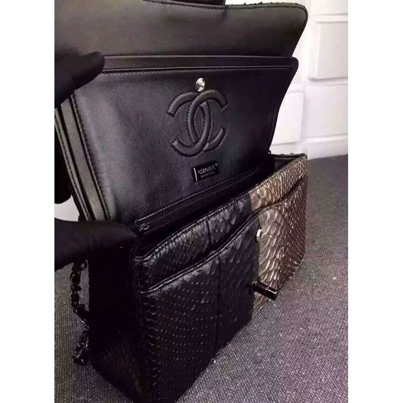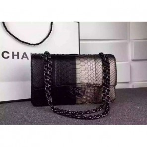 2015 Chanel 2.55 Series Flap Bag Python Leather A1112 Black&Bronze
