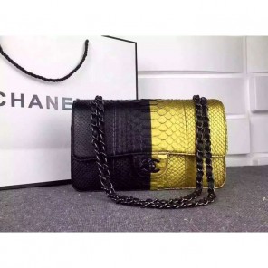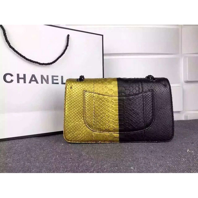 2015 Chanel 2.55 Series Flap Bag Python Leather A1112 Black&Gold
