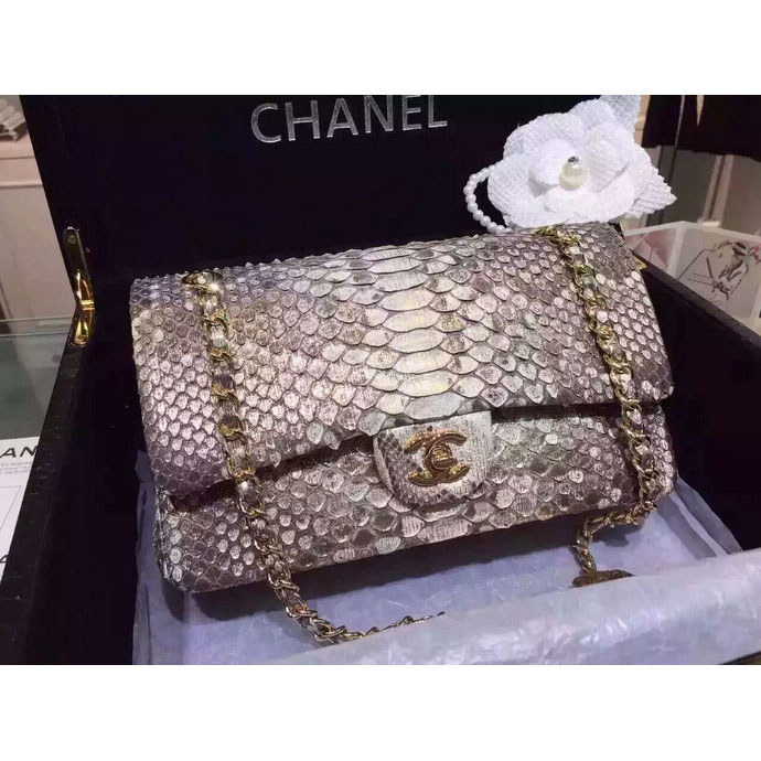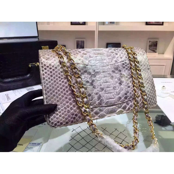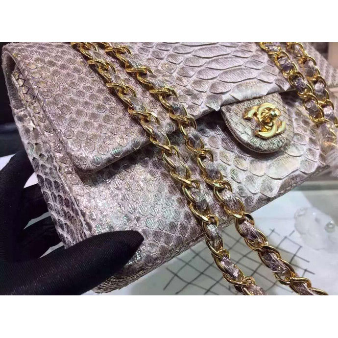 2015 Chanel 2.55 Series Flap Bag Python Leather A1112 White with Gold