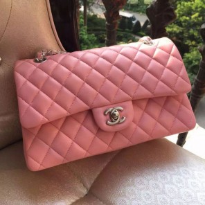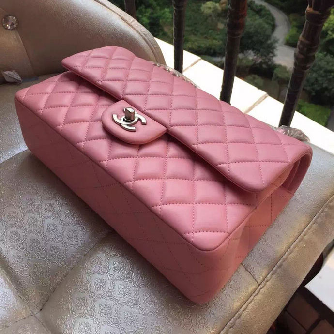 2015 Chanel A1112 Flap Bag Original Sheepskin Leather Pink with Silver