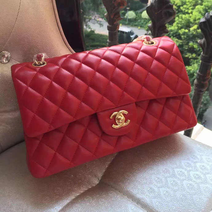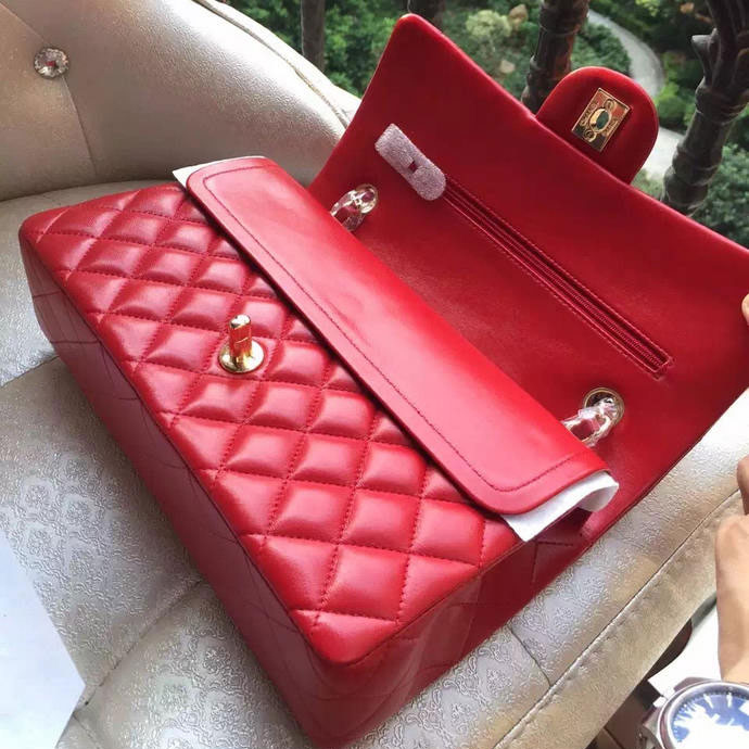 2015 Chanel A1112 Flap Bag Original Sheepskin Leather Red with Gold