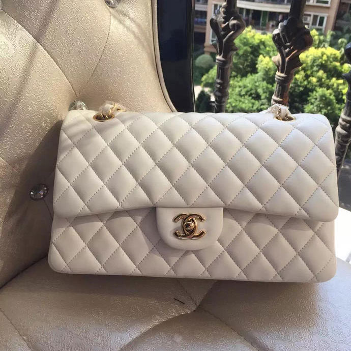 2015 Chanel A1112 Flap Bag Original Sheepskin Leather White with Gold