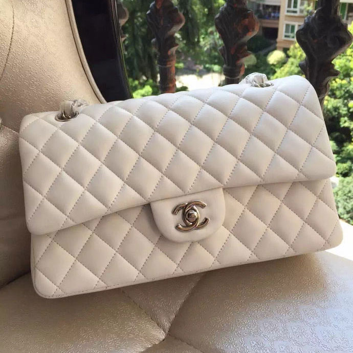 2015 Chanel A1112 Flap Bag Original Sheepskin Leather White with Silver