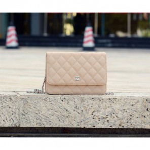 2015 Chanel A33814 Apricot Caviar Leather mini Flap Bag Silver