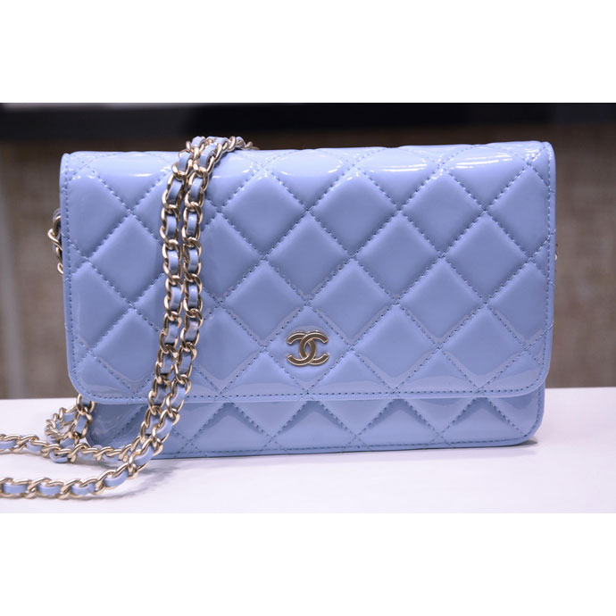 2015 Chanel A33814 Lavender Original Patent Leather mini Flap Bag Gold
