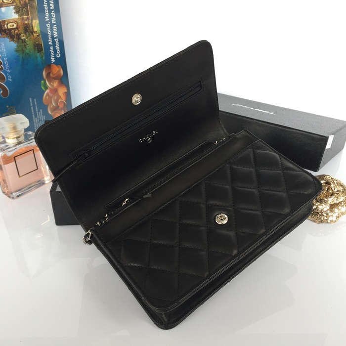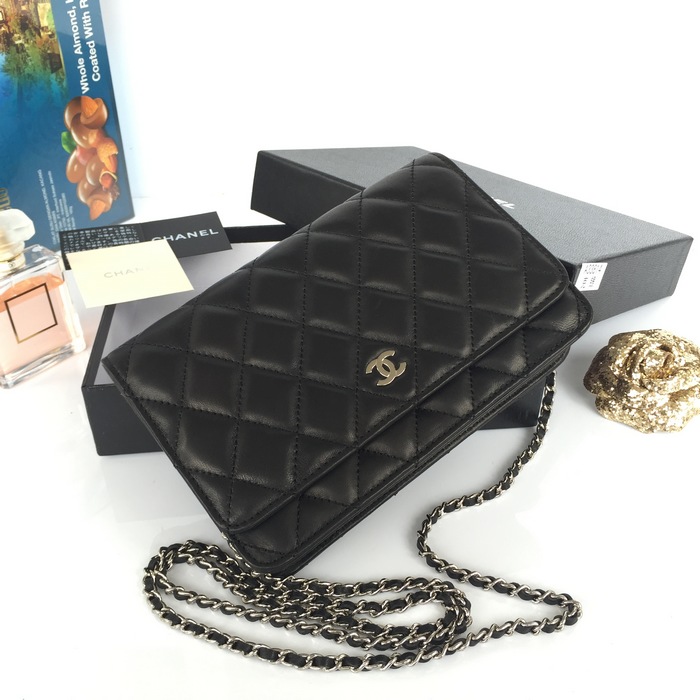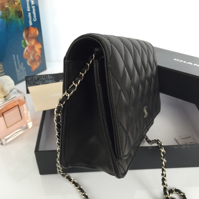 2015 Chanel A33814 Original Sheepskin Leather Flap Bag in Black with Silver