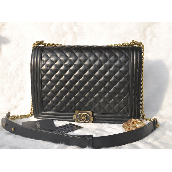 Chanel A67087 Black Calfskin Leather Le Boy Flap Shoulder Bag Come with serial numbers, Chanel authenticity card, Chanel dust bag, Chanel care booklet.