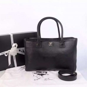 2015 Chanel Black Original Calfskin Leather Tote Bag A67008