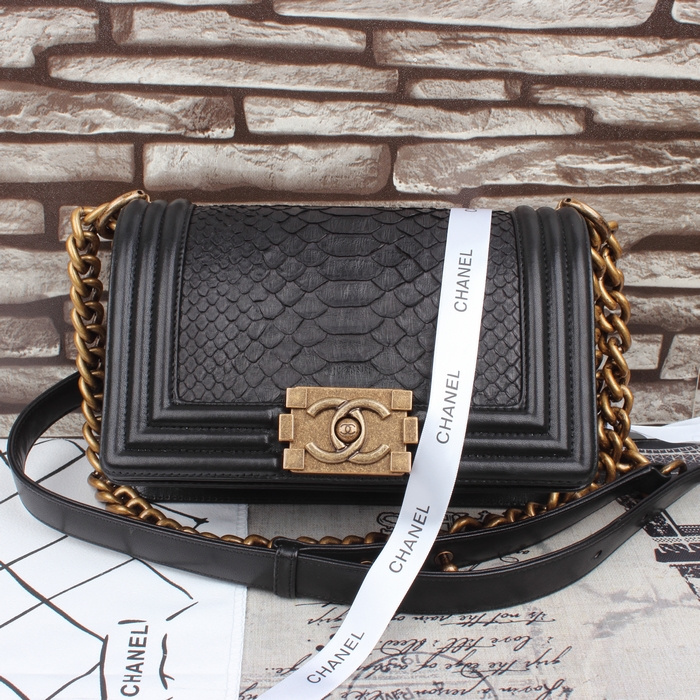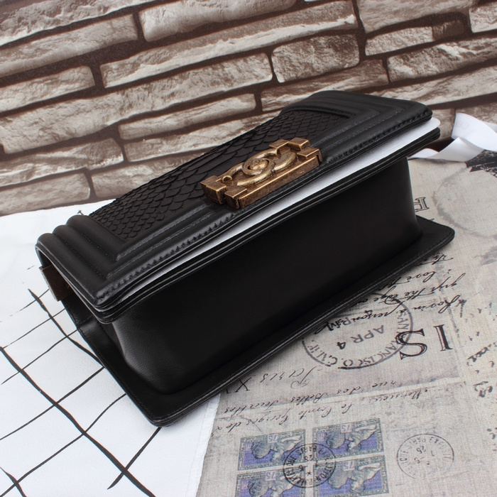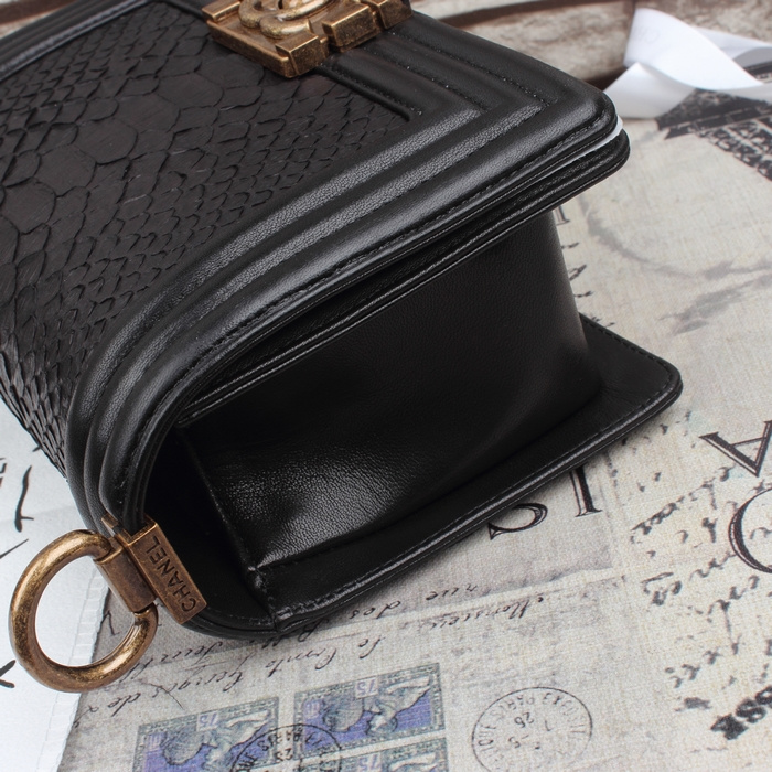 2015 Chanel Boy Flap Shoulder Bag Black Original Snake Leather A67086 Gold
