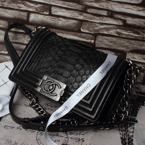2015 Chanel Boy Flap Shoulder Bag Black Original Snake Leather A67086 Silver