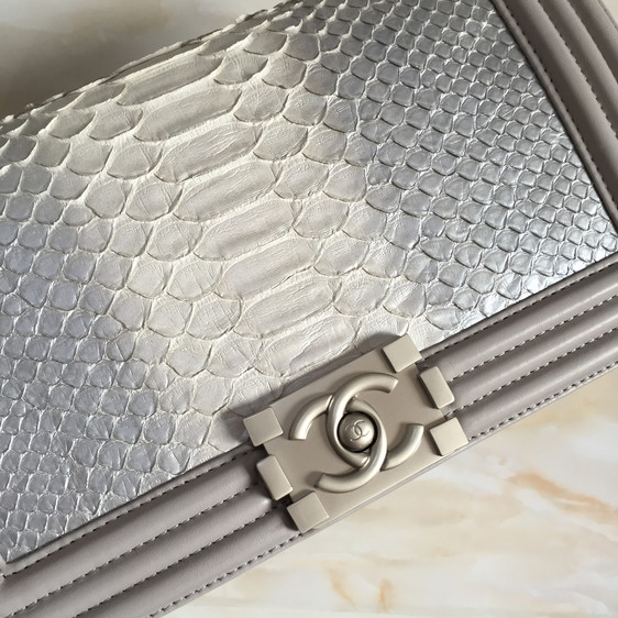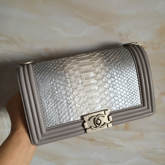 2015 Chanel Boy Flap Shoulder Bag Grey Original Snake Leather A67086 Silver