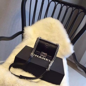 2015 Chanel Boy Flap Shoulder Bag Python Leather A66094 Black