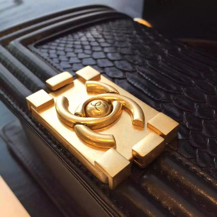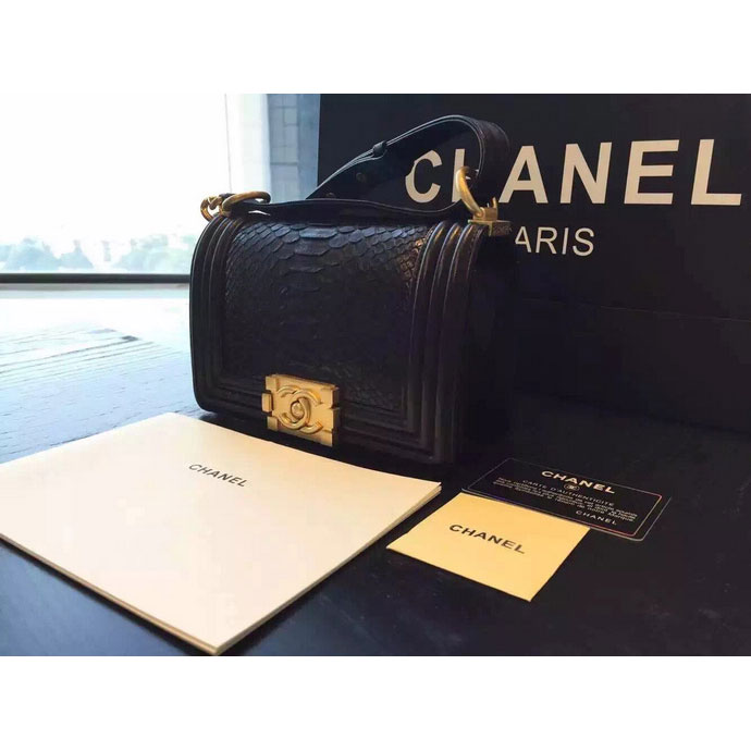 2015 Chanel Boy Flap Shoulder Bag Python Leather A66094 Black