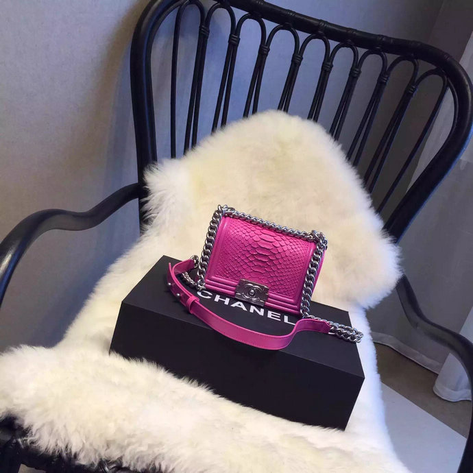 2015 Chanel Boy Flap Shoulder Bag Python Leather A66094 Rose