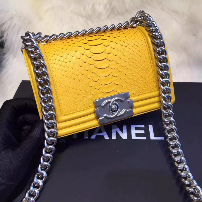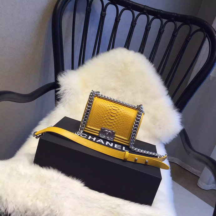 2015 Chanel Boy Flap Shoulder Bag Python Leather A66094 Yellow