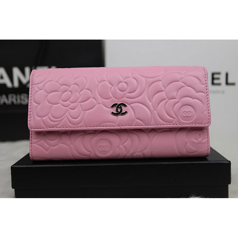 2015 Chanel Camellia Tri-Fold Wallet Original Leater A50084 Pink