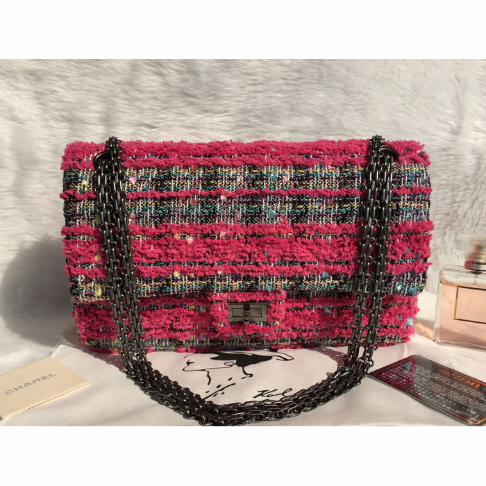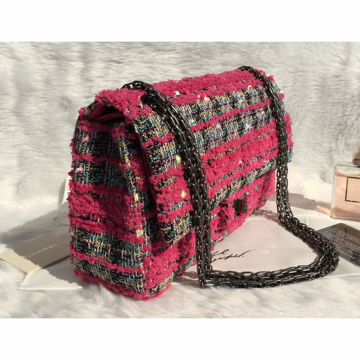 2015 Chanel Cashmere Canvas Classic Flap Bag Gold A30226 Rose