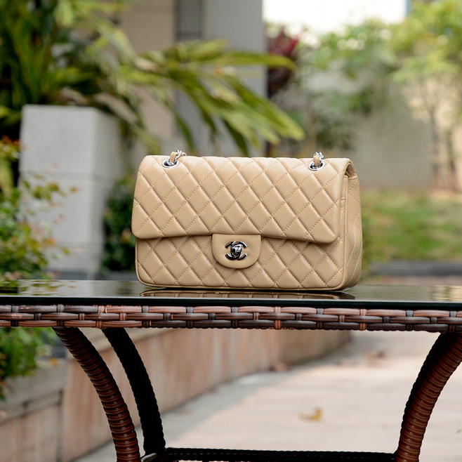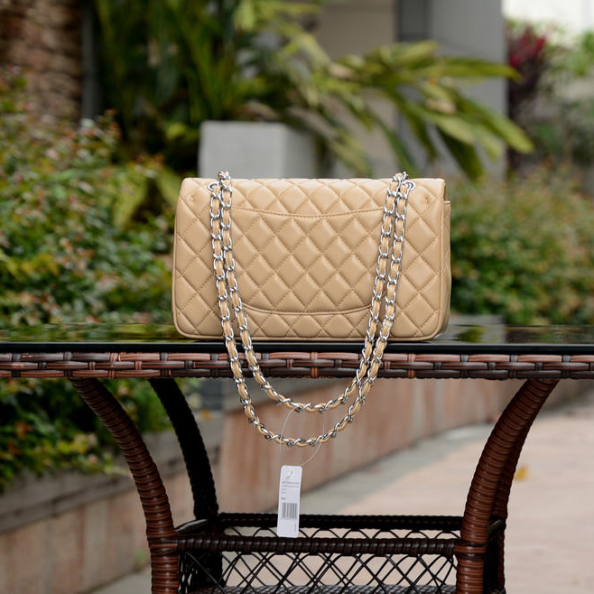 2015 Chanel Classic Flap Bag Apricot Sheepskin leather A37586 Silver