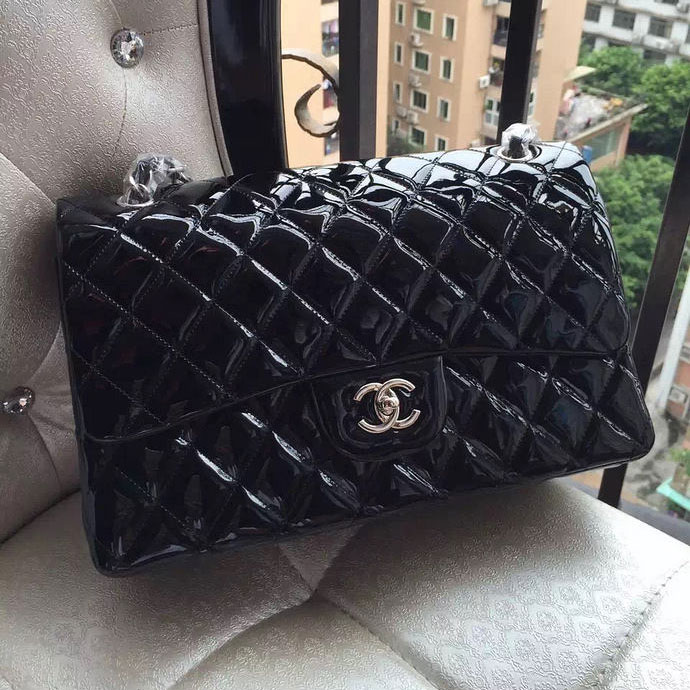 2015 Chanel Classic Flap Bag Black Original Patent Leather 1113