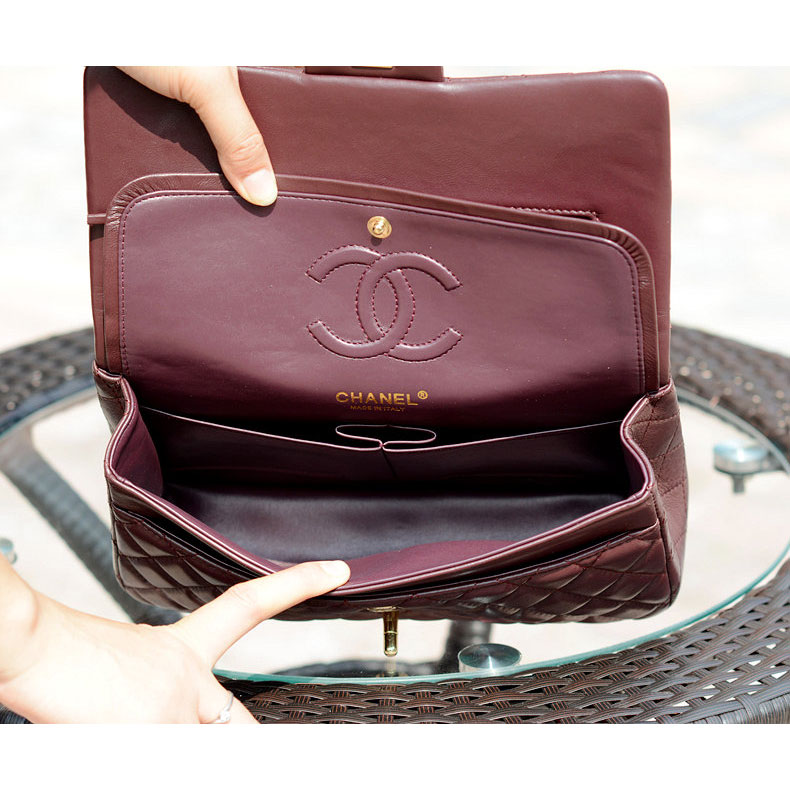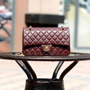 2015 Chanel Classic Flap Bag Burgundy Sheepskin leather A37586 Gold