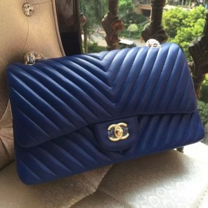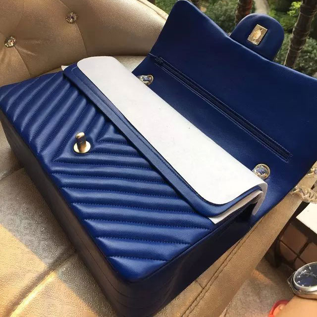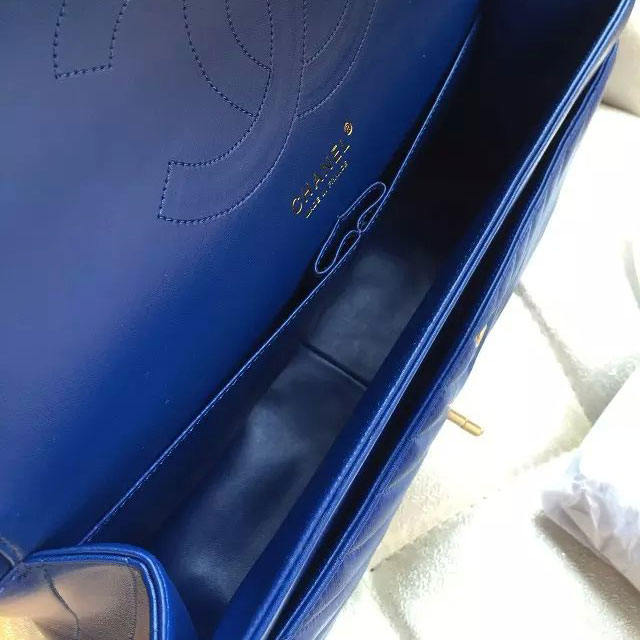 2015 Chanel Classic Flap Bag Original Sheepskin Leather 1113 Blue with Gold