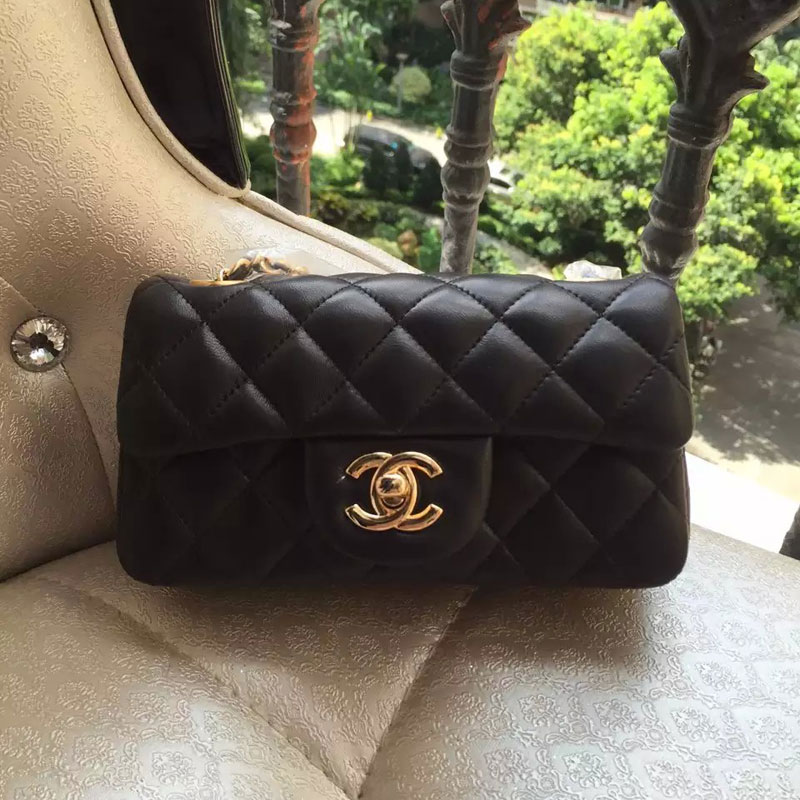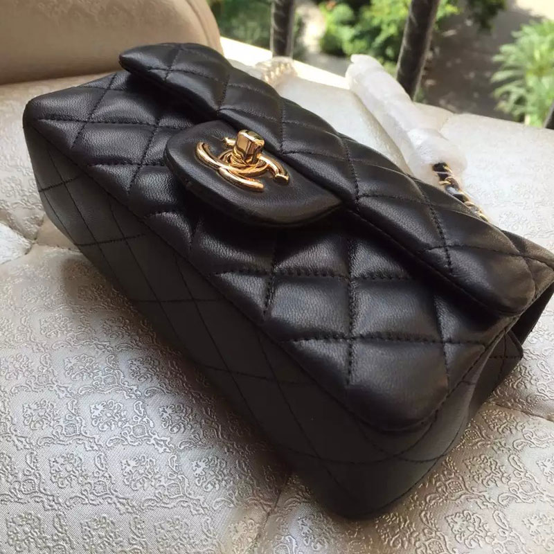 2015 Chanel Classic Flap Bag Original Sheepskin Leather A6035 Black with Gold
