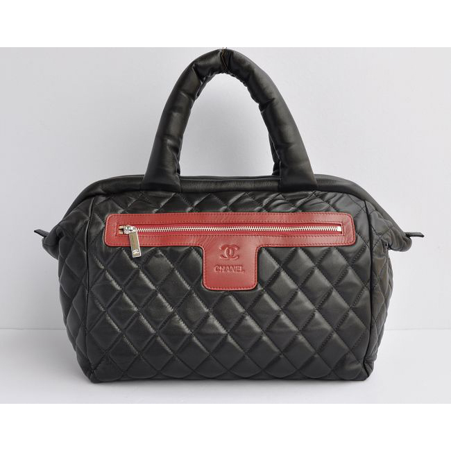 2015 Chanel Coco Cocoon Satchel Bag Sheepskin A47205 Black&Red
