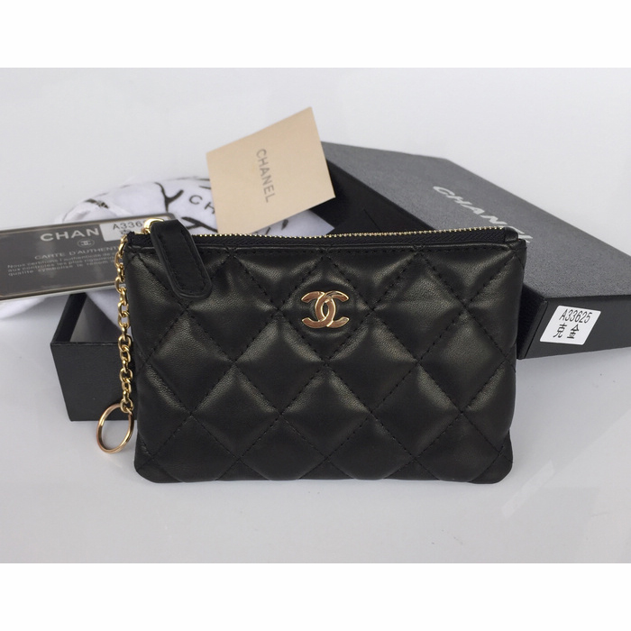 2015 Chanel Coin Purse Black Original Sheepskin Leather A33625 Gold