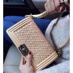2015 Chanel LEY Boy Flap Shoulder Bag Gold Original Leather A67086