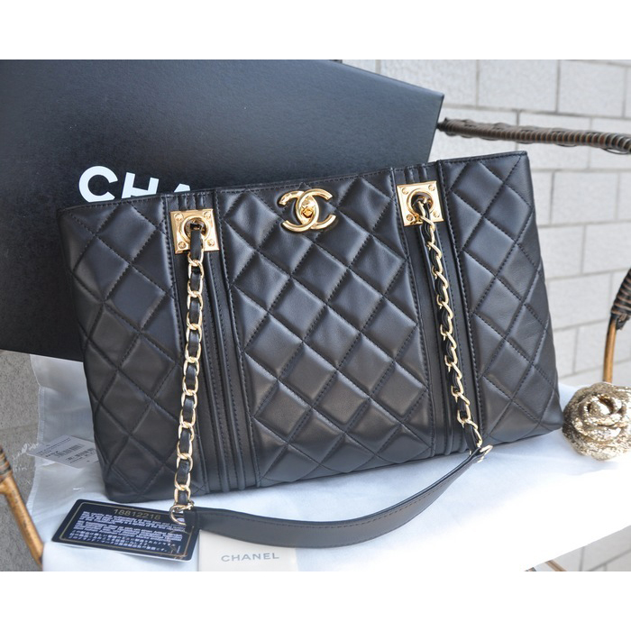 2015 Chanel Large Shopping Bag Original Lambskin A90428 Black