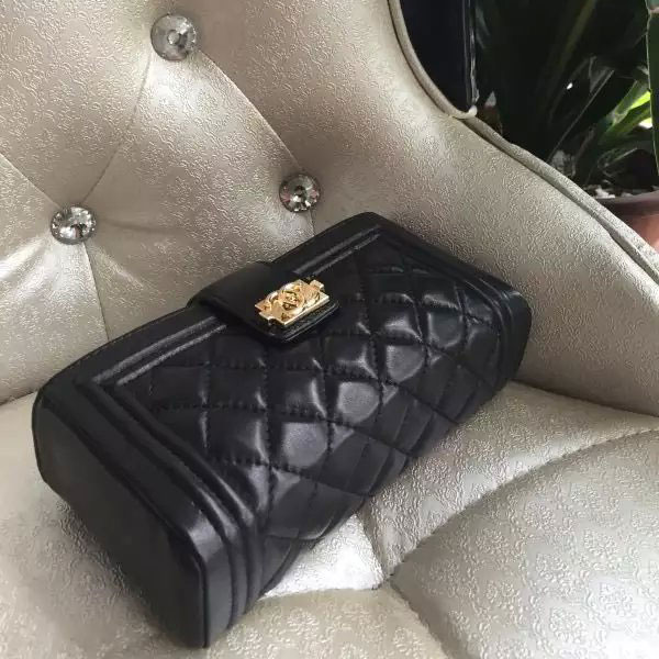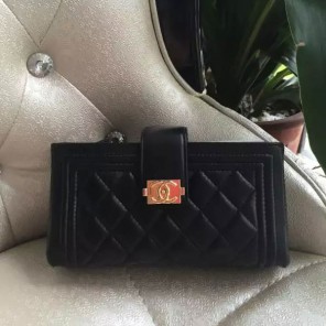 2015 Chanel Le Boy Clutch bag Original Sheepskin Leather A89192 Black