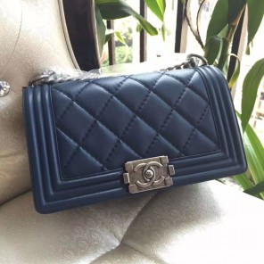 2015 Chanel Le Boy Flap Shoulder Bag Original Leather A92105 in Blue