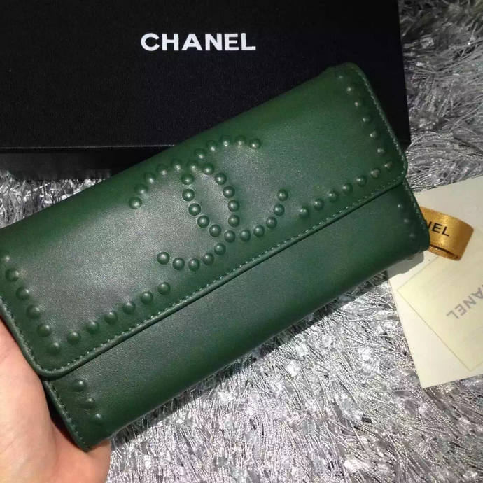 2015 Chanel Matelasse Bi-Fold Wallet Calfskin Leather A66608 ArmyGreen