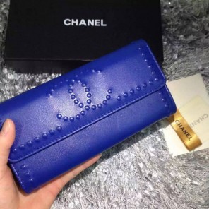 2015 Chanel Matelasse Bi-Fold Wallet Calfskin Leather A66608 Blue