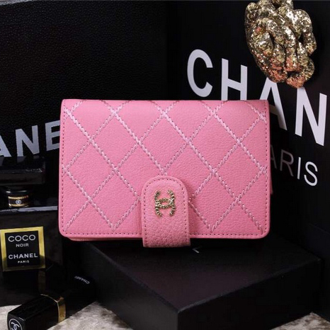 2015 Chanel Matelasse Bi-Fold Wallet Original Leather A9558 Pink